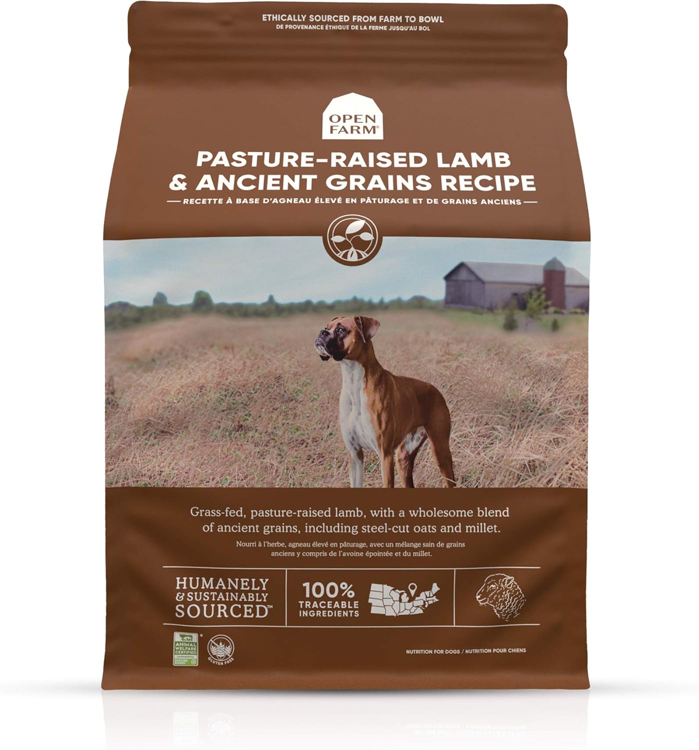Amazon Com Open Farm Pasture Raised Lamb Ancient Grains Dry Dog Food Fresh Grass Fed Lamb Recipe With Wholesome Grains And No Artificial Flavors Or Preservatives 4 Lbs Pet Supplies